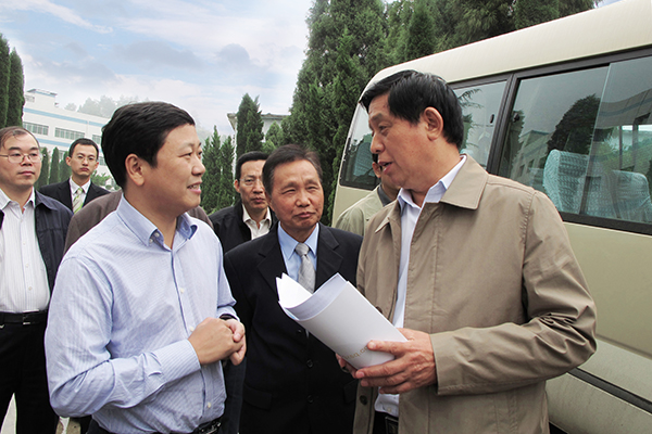 2009年11月,時任云南省委書記李紀恒(右三)來宜良紅獅調研,支持紅獅在云南發(fā)展